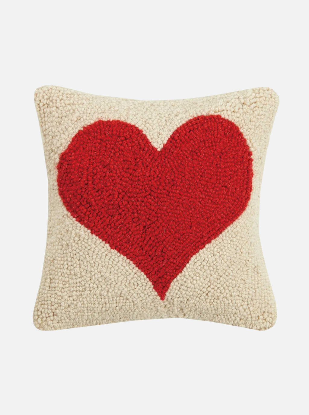 The Heart Hook Pillow adds a sweet Valentine’s touch to any couch, chair, or bed. Its white background with a bold red heart makes it a simple, charming accent for seasonal or everyday styling.
